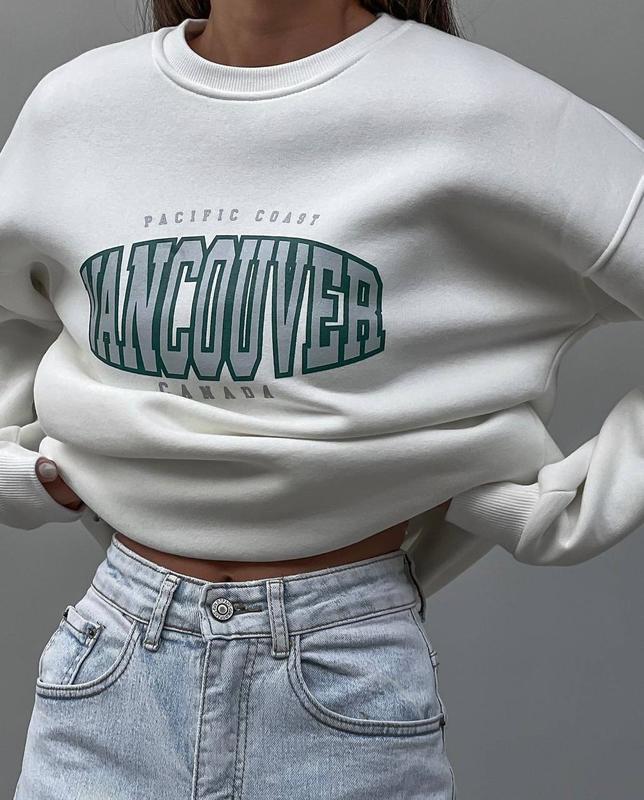 НОВИНКА🇺🇦 🔶Світшот “VANCOUVER”🔶 ▪️Модель: 1365 ▪️Тканина: турецька трьохнитка НА ФЛІСІ ▪️Розмір: 42-48 ▪️Колір : чорний та білий 🏷Ціна 500 грн🔥 Супер якість за низькою ціною🔥 💬 Світшоти для тих, кто хоче виглядати стильно навіть в прохолодні дні🤩 Тепленькі світшоти оверсайз з трендовим написом доступні в двох кольорах🥰 Манжети із основної тканини. Якісна накатка✅ 📌ЗАМІРИ ВИРОБУ: 42-48 Довжина 70 см ОГ 114 см Рукав від ворота 72 см
