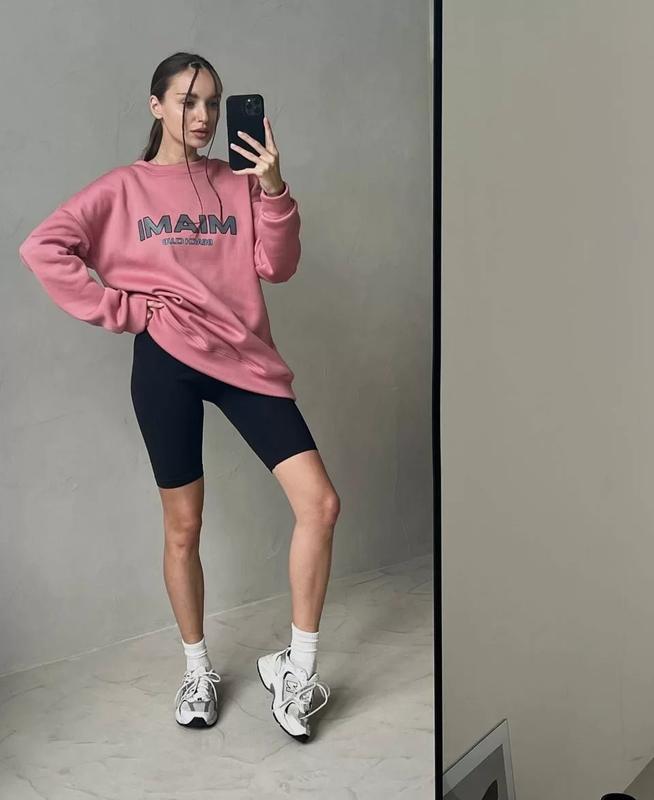 В НАЯВНОСТІ✅ 🔶Світшот “Miami”🔶 ▪️Модель: 1355/2 ▪️Тканина: турецька трьохнитка НА ФЛІСІ ▪️Розмір: 42-46 та 48-52 ▪️Колір : чорний та троянда, 🏷Ціна 550 грн🔥 Супер якість за низькою ціною🔥 💬 Яскравий стиль твоєї осені🍂✨ Трендові теплі світшоти оверсайз додадуть у твій образ більше яскравих фарб 🌈 Манжети із основної тканини. Якісна накатка✅ 📌ЗАМІРИ ВИРОБУ: 42-46 / 48-52 Довжина 69 см / 70 см ОГ 108 см / 114 см Рукав 72 см / 74 см 👇👇