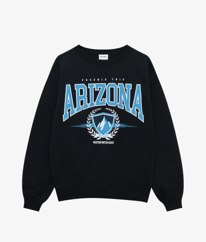 Світшот від PULL&BEAR Колір чорний Трендовий принт, мягенькі На флісі, оверсайз Розмір S