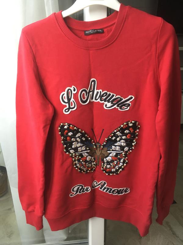 Свитшот красного цвета. Апликация бабочка с камнями. Размер 36
