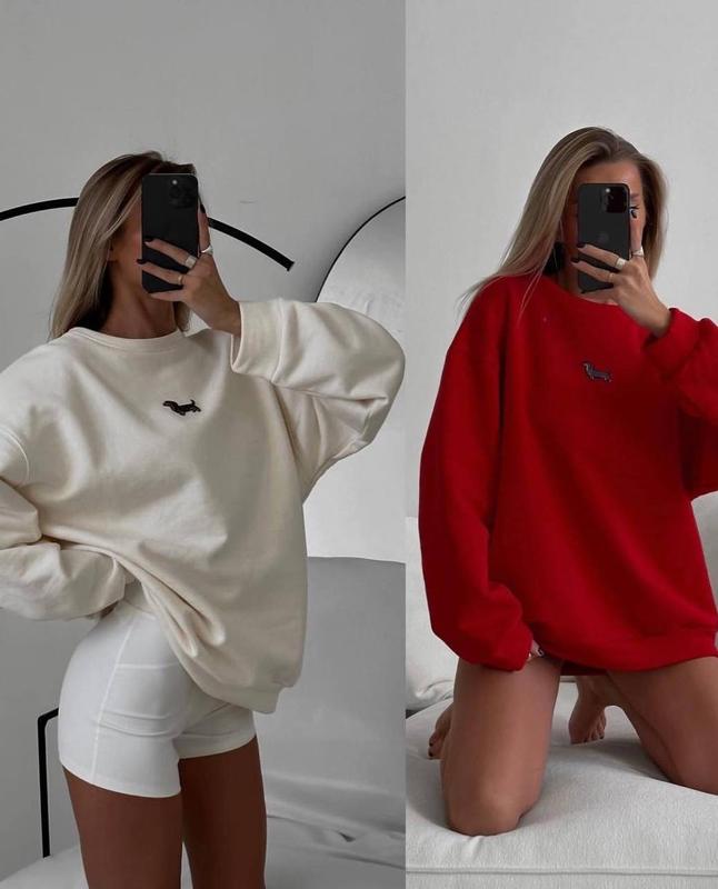 Яскраві і теплі світшоти з песиком🐶Дуже стильні🔝 Ціна - 579 грн🔥 Мод. b 900 Розмір: 42-46, 48-52 Тканина: Тринитка на флісі Колір: молочний, червоний Наявність товару 100%👌