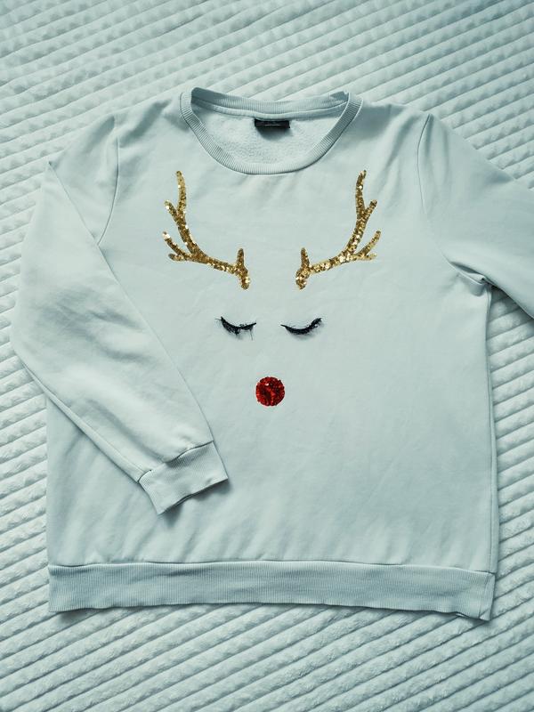 Женский новогодневный свитер/свитшот Yessika, утепленный. Стан - идеальный. Размер М/L. Ширина по плечам - 41см, ширина под руками - 58см, длина по спине - 61см, длина рукава от плеча - 59см.