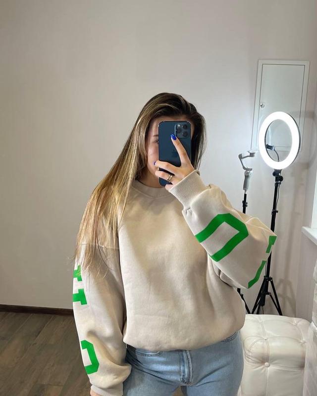 Стильний, якісний світшот Дівчата, він просто пушка🤤 Ціна 800 грн Модель 221/4943 Розмір: 42-46 ( універсал ) Колір: білий Тканина: дорога Турецька трьохнитка «ПІНЬЄ» ( м'яка, тепла, не кашлатиться ), манжет на рукавах, горловині - рібана Рукав - вишивка Спереду та на спинці - якісна накатка