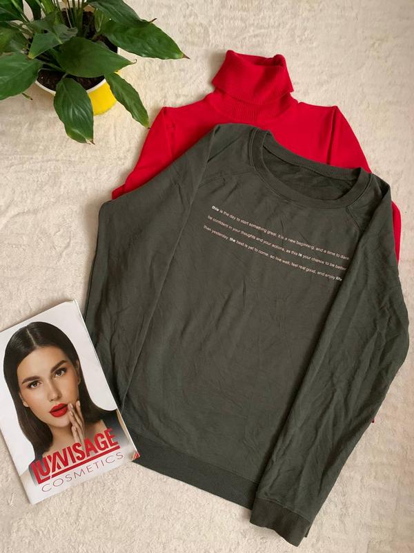 Стан ідеальний, без дефектів. Бірка з виробником, складом та розміром зрізана. Орієнтовно це S-M. Напис оптимістичний та заряджає на позитив) Плечі не виражені, довжина рукава від горловини 70 см, від підмишок 48 см Пог 50 см Пот 47 см Поб (планка) 47 см Довжина 61 см Тканина тягнеться, м'якенька та приємна до тіла