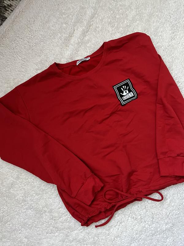 Класний, оригінальний світшот червоного коляру на зав’язку внизу можна зробити коротшим Розмір с