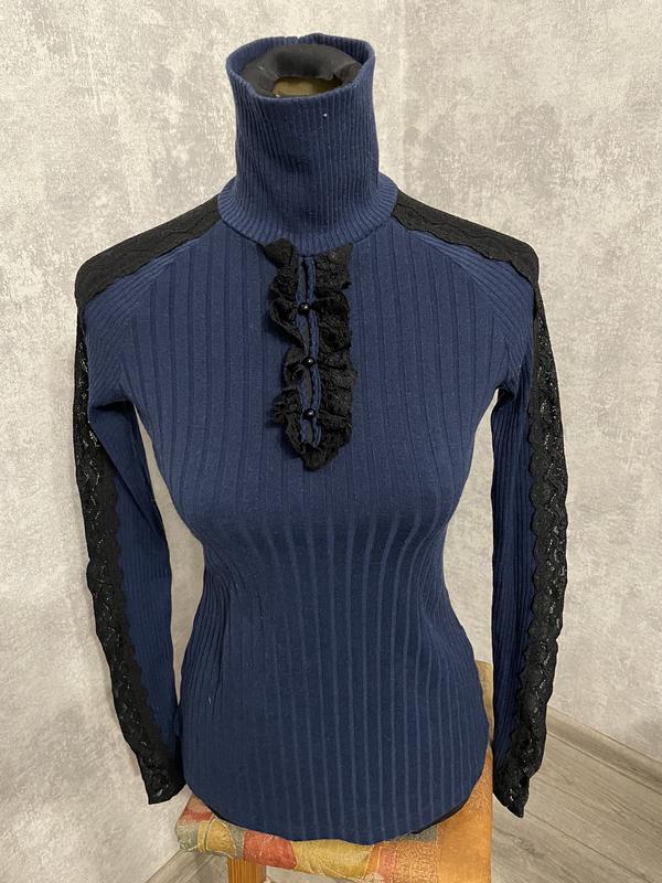 Шикарный гольф. С кружевом. Новый. Глубокий синий цвет. Размер хс/с