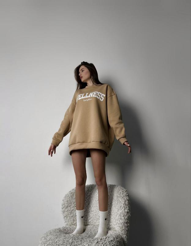 Фото-Напиток ❤ Свитшот Модель : 144 Ткань: Дорога Турецкая трехнить "ПЕНЬЕ" (не кашлатится, не линяет, очень теплый) Цвета: графит, беж Размер: 42-46( универсальный) Цена: 480 грн Длина изделия: 75 см Объем груди : 138 см