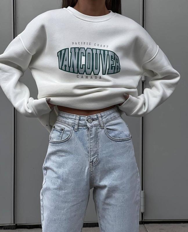 В НАЯВНОСТІ✅ 🔥АКЦІЙНА ЦІНА 449грн🔥 🔸Світшот “VANCOUVER” ▪️Модель: 1365 ▪️Тканина: турецька трьохнитка НА ФЛІСІ ▪️Розмір: 42-48 ▪️Колір : білий 🏷Ціна:449 грн🔥 Супер якість за низькою ціною🔥 💬 Світшоти для тих, кто хоче виглядати стильно навіть в прохолодні дні🤩 Тепленькі світшоти оверсайз з трендовим написом доступні в двох кольорах🥰 Манжети із основної тканини. Якісна накатка✅ 📌ЗАМІРИ ВИРОБУ: 42-48 Довжина 70 см ОГ 114 см Рукав від ворота 72 см