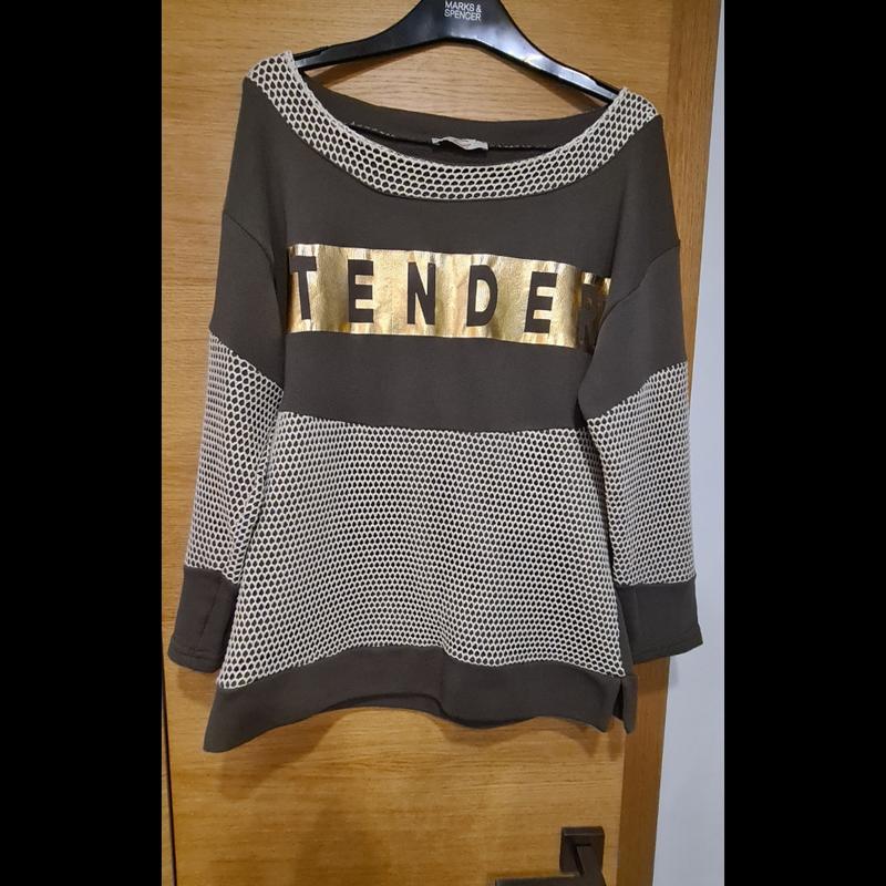 Сделан из трикотажа и в комбинации идет сетка, мягкий, стильный Длина по спинке 63 см Длина рукава от горловины 61 см Плечо немного спущенное, рукав 3/4, горловина расширена. Италия