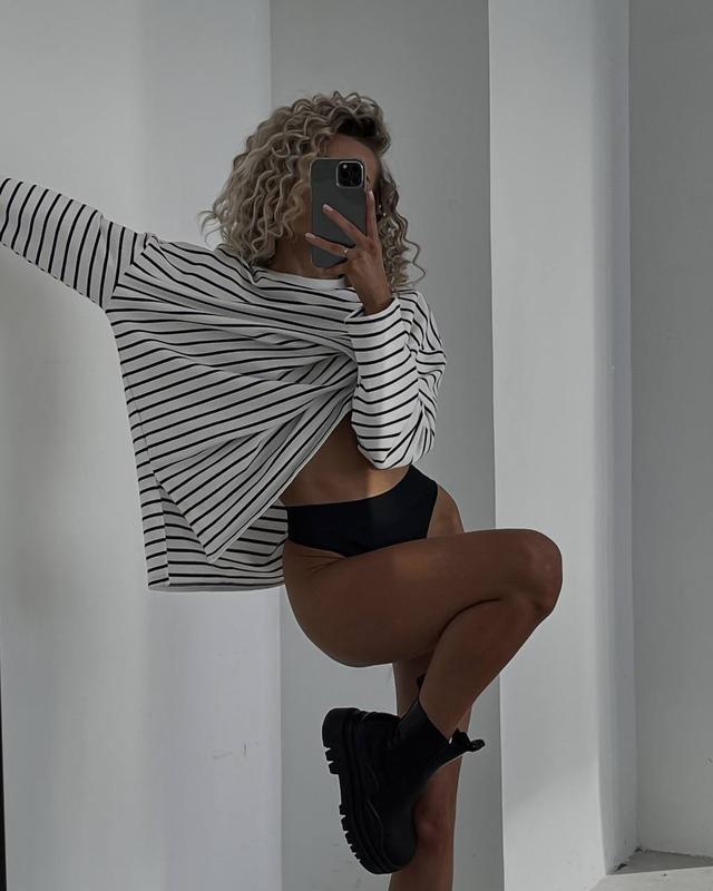в наличии ✔️#Тельняшка 🏷️ 720 грн Размеры: 40-46 (универсальный) Материал: турецкая вискоза Замеры на последнем фото 🧐 Приглашаем к профилю: женская одежда, сумки очень крутые вещи отличного качества по самой низкой цене🔥💪 также есть Инстаграм и Телеграмм Заказать 💌