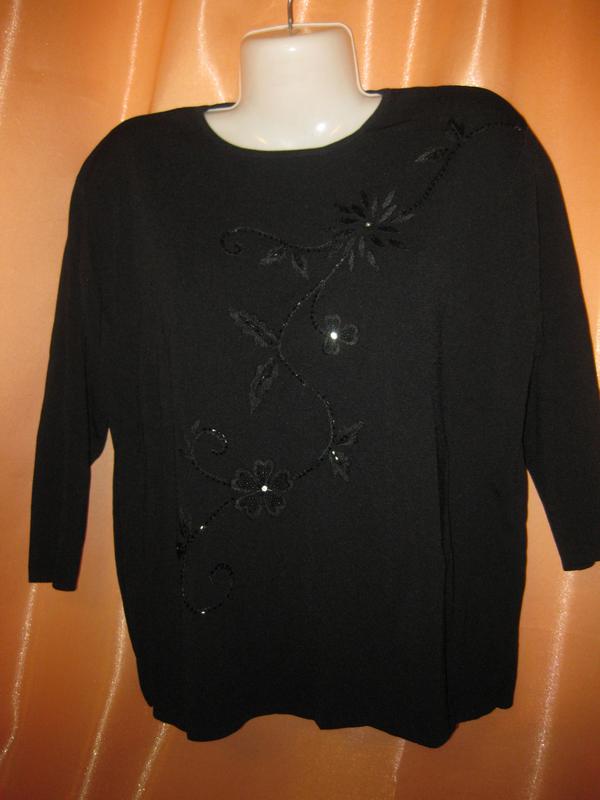 черная нарядная кофта свитшот свитер км1508 супер тянется, в мелкий рубчик с декором вышивкой и бисером Стан ідеальний– немає пошкоджень, немає розривів, немає плям, дивіться фото, якщо тут не збільшується – надішлю додаткові за запитом. на фото манекен розміру S-М Заміри: ПО під пахвами 55 см тягнеться до 88 см, ПО по низу 55 см тягнеться до 84 см, ширина плечей 44 см, довжина рукава 41 см. " Если вас интересует какая-нибудь вещь, но есть сомнения или вопросы, то пишите. стараюсь всем ответить. смотрите все объявления. при покупке двух (сразу или в течение месяца) или более вещей возможны скидки до целых 20-50%!! АКЦИОННАЯ ДОСТАВКА + ✔✔✔ отправим любой службой доставки по Вашему выбору. !Для того чтобы была акция-доставку нужно оформить Вам на сайте через кнопку купить "