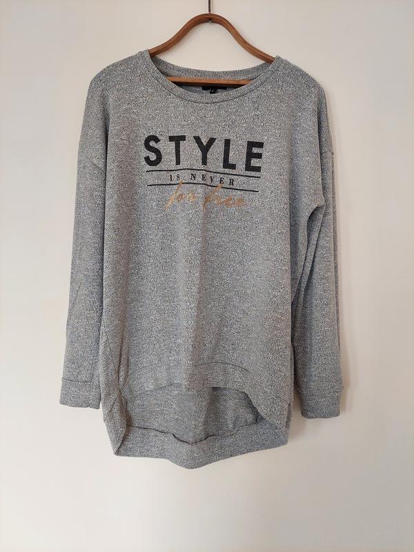 Модний світшот, приємний до тіла, спереду вкорочений. Заміри: ПОГ - 56 По низу - 53 Довжина ззаду- 75 Рукав від шиї- 69