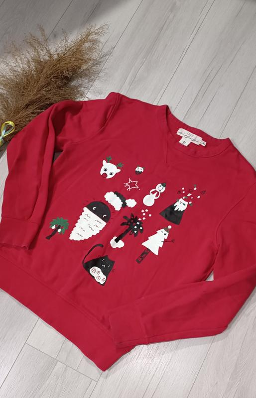 💙💛Свитшот H&M в новогодний принт 🔹 made in Indonesia 🔹100% бавовна 🔹 размер М, подойдет на М-небольшой L 🔹 грудь 53 см, длина 62 см, рукав 60 см. 🔹состояние очень хорошее по выключению маленькой дирочки на левом рукаве (последнее фото)