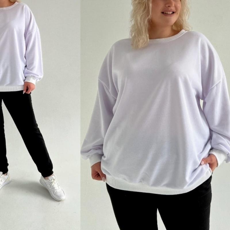 Свитшот GU-1734 Размеры: Универсальный Объем груди 140 см подойдет на любой размер. Длина 75 см, Длина рукава от горловины 74 см. Материал: трехнитка петля + Рибана Цвета: черный, белый, пудра, фреза, горчичный, нежно желтый, бирюзовый, лаванда. (лаванда, черный, мята без рибаны снизу)