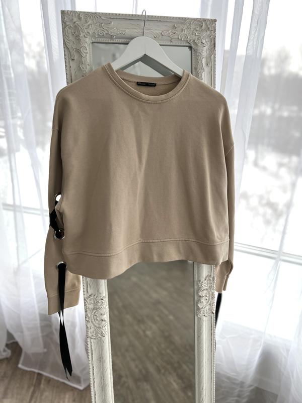 Свитшот Зара, трехнить, очень оригинальные рукава. Размер М/L Замеры: длина 53, пог 63, рукав 53, не тянется