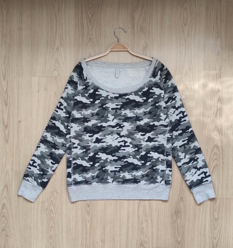 Хороший тёплый свитшот в расцветке милитари/камуфляж. Изнанка- мягкий футер. Плечо-реглан. Манжеты и низ изделия - широкая мягкая резинка. Боковые вставки с плоскими контрастными швами и глубокий вырез горловины делает изделие нескучным. Размер указан М. Фактические замеры в расслабленном состоянии (не на теле): - длина рукава от горловины до края манжета - 70 см; - полуобхват груди - 51,5 см; - полуобхват низа (в месте, где пришита резинка) - 50 см; - полуобхват низа (низ резинки) - 45,5 см (+тянется); - длина изделия - 64 см. Приятной Вам покупки!)