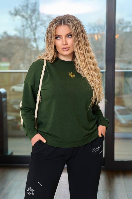 НОВИНКИ!!!❤️ Свитшот Мод 1493 Тканина- Двохнитка Свитшот с Трезубом, принтом термотрансфернои пленки. цвет- черный, хаки. 46-48- 110, от-106,длк- 61,длр- 60 50-52 - ог-118, от-114, длк.- 62, дл р-61 54-56- ог-124, от-120, дл коф. -63, длр- 62 58-60- ог-130, от -126, дл коф. -64, длр-63 62-62- ог-136, от-132, дл коф- 64, длр -63 см. 🤩