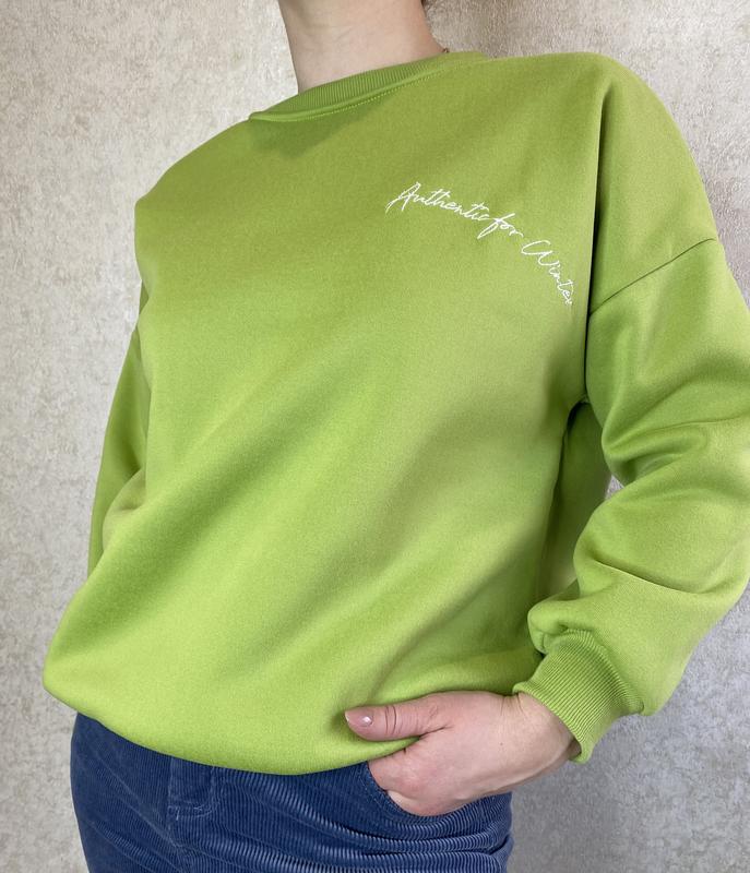 ▪️Світшот на флісі ▪️Розмір - Універсальний ▪️Півобхват грудей - 56 см ▪️Довжина - 64 см ▪️Колір - Салатовий ▪️Ціна - 299 грн