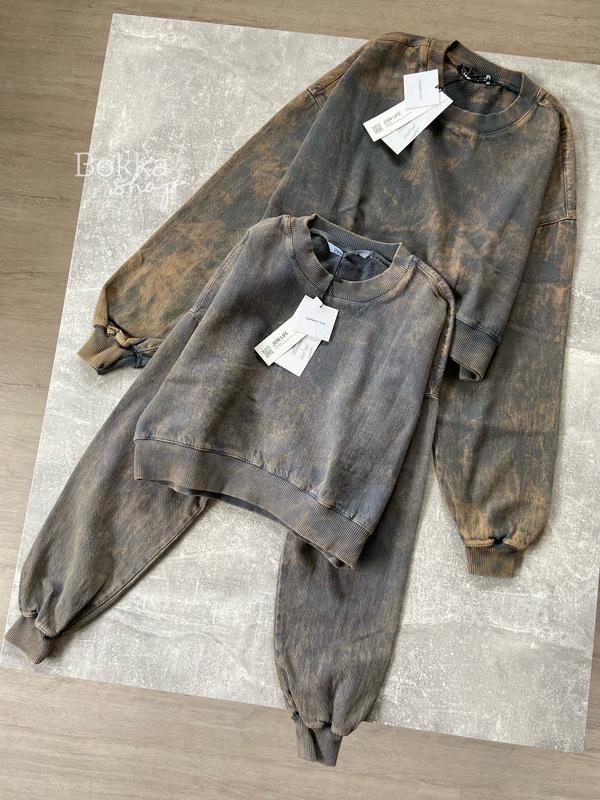 Світшот з ефектом потертості Zara Тканина плотна, схожа на джинс В наявності в розмірі Xs 100% котон 📏Xs: довжина 43 см, рукав 74 см, пог 49 см