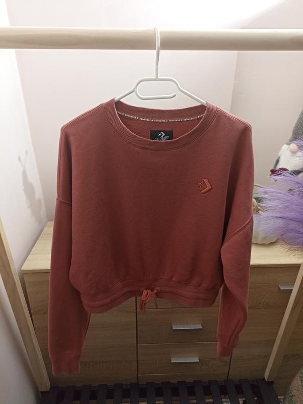 Укороченный свитшот оригинал Converse. Размер М. Внутри на флисе. Состав: 78% хлопок, 22% полиэстер, 5% эластан. Замеры: ПОГ 62см; плечи 63.5см; рукав 51см; длина 47см; резинка по низу 40.5см.