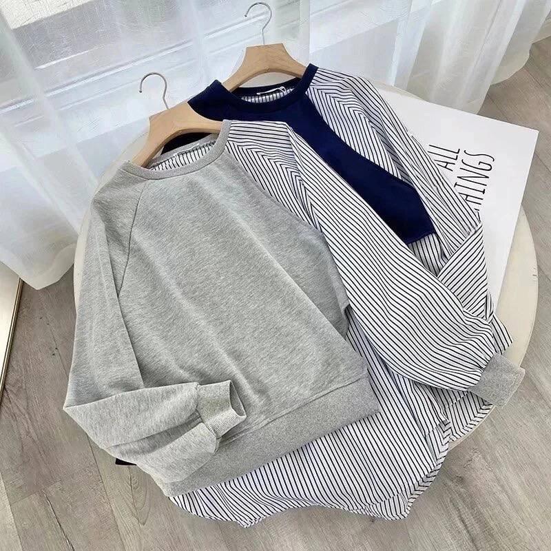 Асимметричный свитшот в сочетании с коттоновой рубашкой ■ Цена: 545 грн ■ Тканина: основа -трикотаж двунить, сорочка - коттон ■ Размеры: 42-46; 48-52 over ■ Описание: Свитшот отличного качества, полоска т. синяя. Все обрабатывающие элементы (горловина, манжеты рукав и низ кофты обработаны -кашкор)