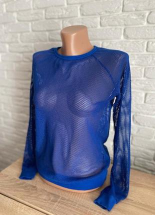 Стильный синий свитшот в сетку Размер 36 (S) ТОВАР ЛЮКС.