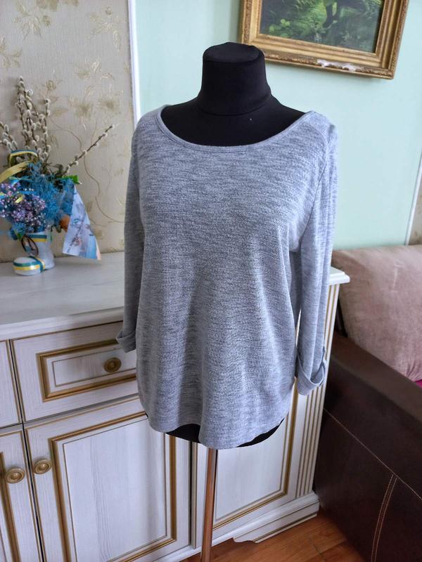 тоненький трикотаж, цвет серый меланж, длина 60, длина рукава 42, обхват бедер 1/2 49,обхват по груди 1/2 49, без нюансов