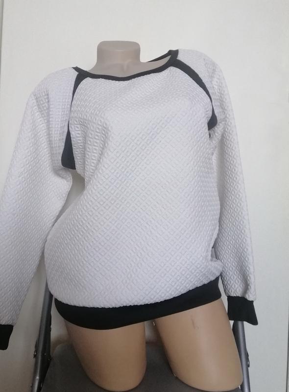 Свитшот из структурной ткани в красивом состоянии. Размер указан S, подойдет на M-L Нюанс - в районе подмышек слегка изменен цвет из-за антиперспирант, извне не заметно Замеры: Полуобхват груди - 51 Полуобхват бедер - 45 Длина от плеча 62, по спинке 59 Рукав-реглан - 64