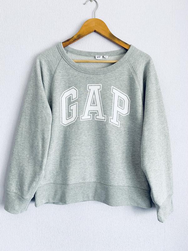 Женский свитшот GAP с лого в отличном состоянии, размер L, свободного покроя, цвет светло-серый меланж.