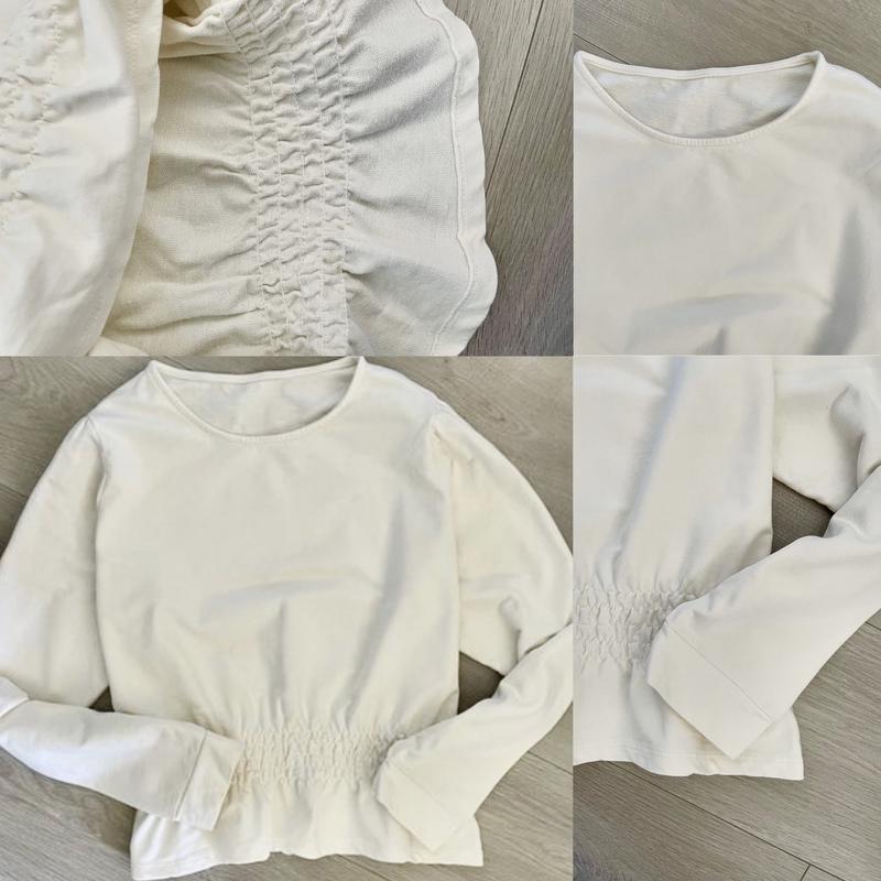 Укорочений світшот від Z@ra (бірка відсутня) 100% котон, в ідеальному стані.В молочному кольорі Довжина 52 см Пог 55 см Рукав 58 см