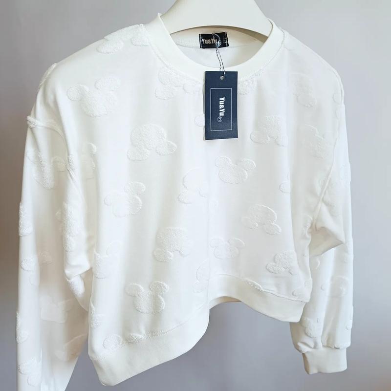 Укороченный свитшот легкий с выбитыми "Микки" из махры. Размер S, М, L. Молочный цвет
