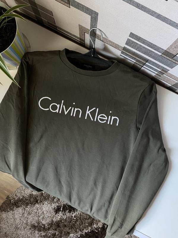 Хаковый свитшот от CK Оригинальный Стан замечательный, принт 4/5 Цвет насыщенный Размер М можно с/м Замеры: Плечи 42 Подмышки 53 Рукав 74 Длина 60