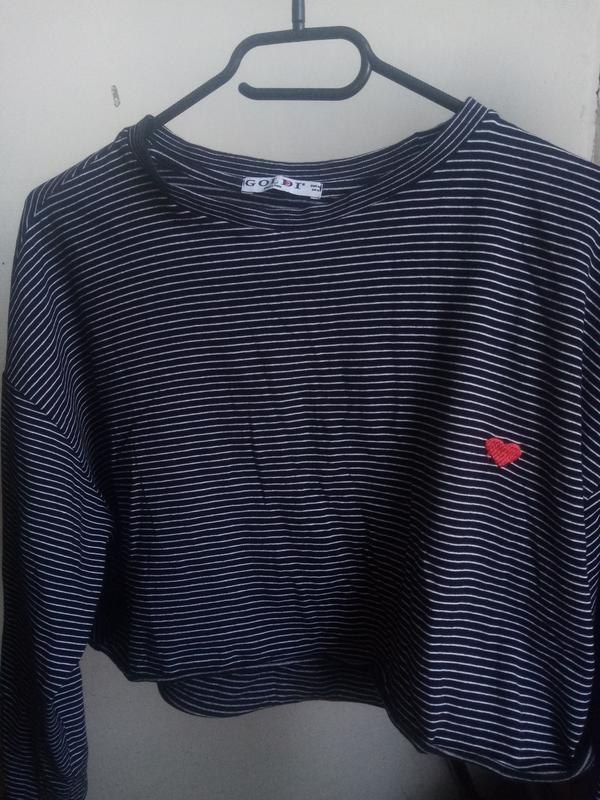 Укороченная кофта в линию, с маленьким сердечком, размер M, без диффектов