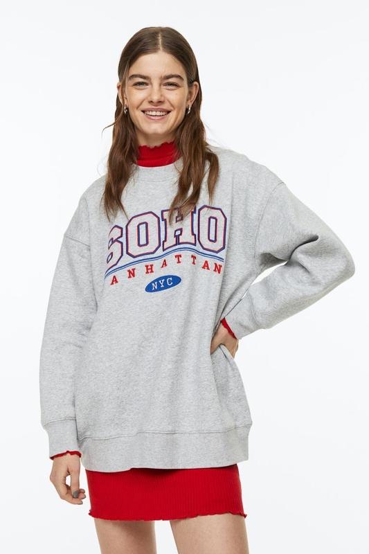 Свитшот, толстовка H&M Новая, с бирками Размер: S, оверсайз Цвет: серый, с сине-красной надписью