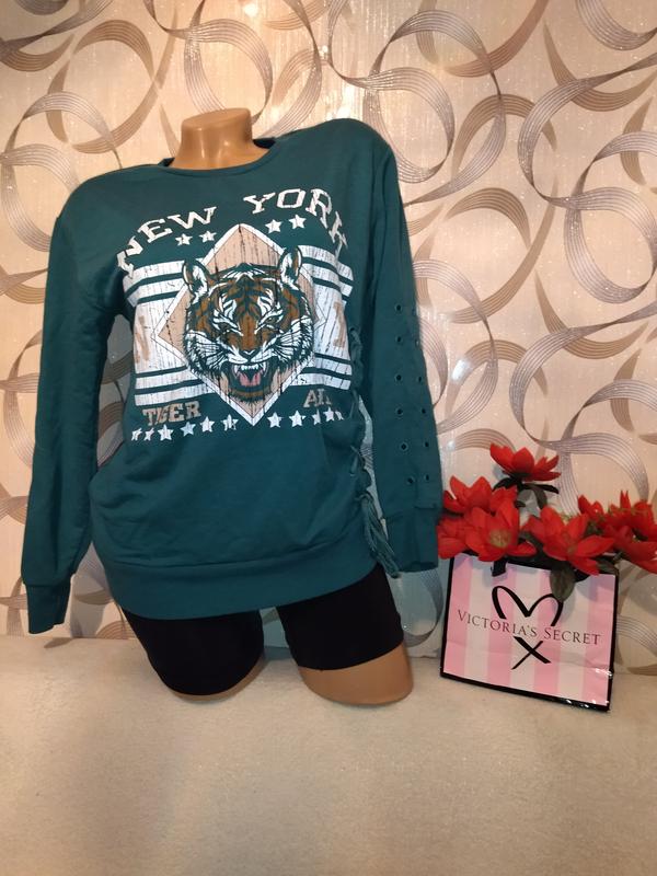 Свитшот с Тигром от Primark,подойдет на 44-46р.Цвет зеленый.Состав ткани:81%-полиестер,19%-котон.Дефектов и нюансов нет.Замеры по требованию