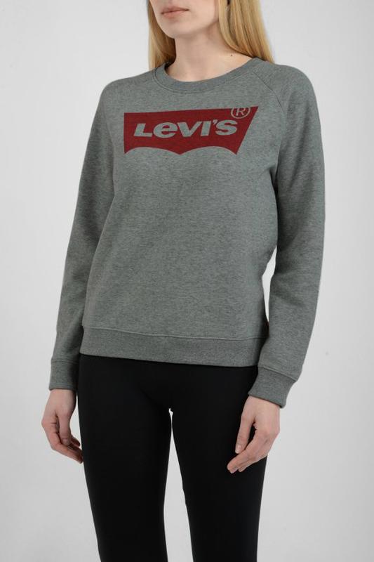 Состояние новой вещи! Оригинальный! Женский меланжевый пуловер, свитшот, кофта Levi's. На этикетке размер S, подойдет на S, M. Свитшот серого меланжевого цвета из натурального хлопка. Однотонная модель, круглый вырез горловины, рукава реглан, трикотажная резинка на манжетах и по низу изделия. Спереди украшен фирменным логотипом бренда. Изготовлено в Пакистане. длина - 63 ширина - 58-49 см рукава от горловины - 70 см