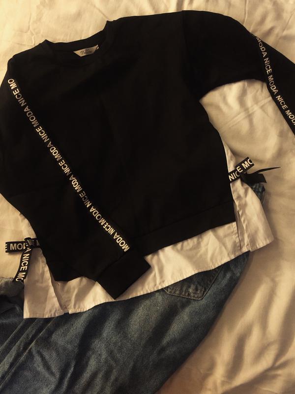 Кофта, свитшот черного цвета, снизу белая вставка (обманка) Размер XS-S ткань не будет кашлатиться