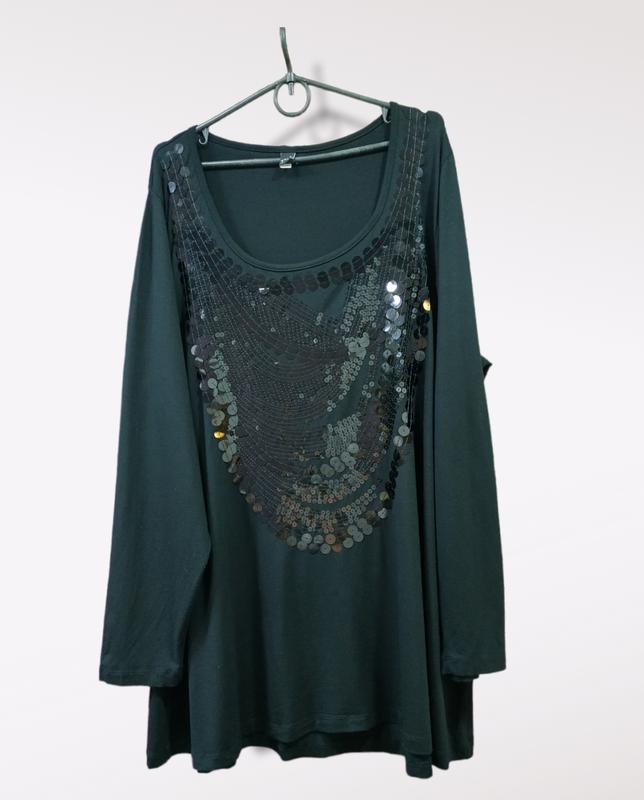 Очень красивый и невероятно приятный к телу женский свитшот. Струящийся вискозный трикотаж. Насыщенный черный цвет. Новое состояние. ПОГ-66+ тягнеться Длина-80 Полуобхват по низу-80+ Рукав-63 Плечи-41