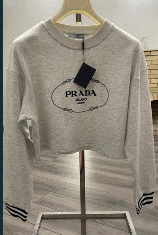 Свитшот Prada укороченная модель в стиле оверсайз .Качество люкс .Состав 100% натуральный хлопок. Смотрится под джинсы штаны брюки шорты юбку Размеры С,М,Л