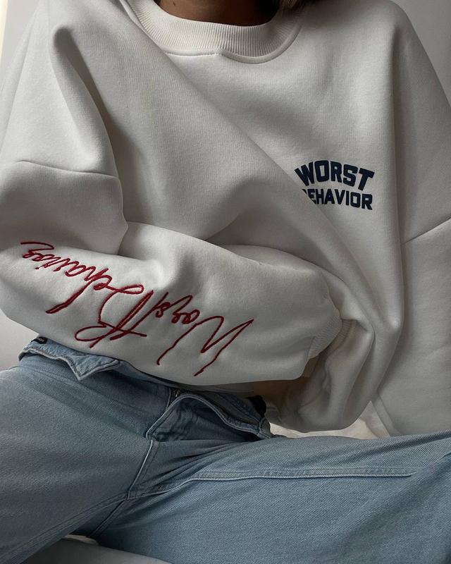 🔠🔠🔠🔠🔠🔠🔠 Стильный, качественный свитшот Девочки, он просто пушка🤤 Модель ll 221 Размер: 42-46 (универсал) Цвета: молочный, голубой Ткань: дорога Турецкая трехнить «пенье» на флисе ( мягкая, теплая, не кашлатится), манжет на рукавах и горловине - кашкорсе Рукав - вышивка Спереди и на спинке - качественная накатка 📸Фото реал