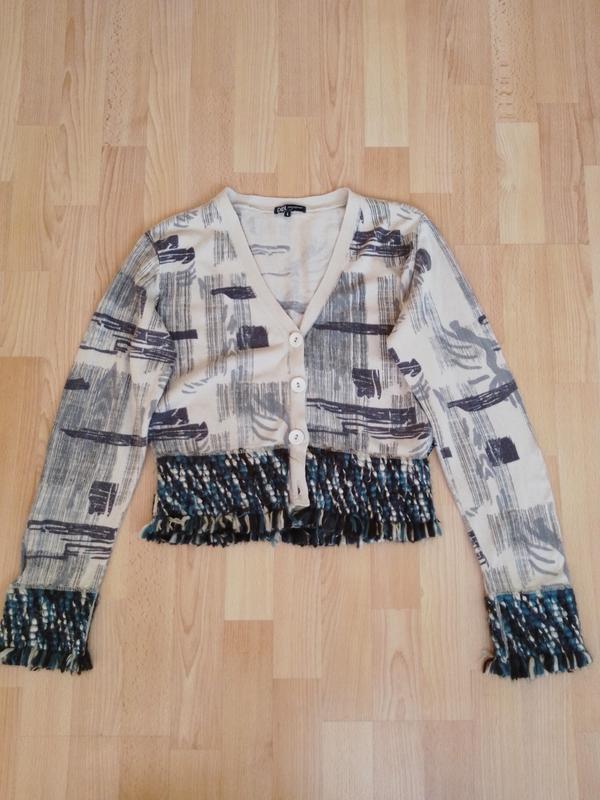 В отличном состоянии, очень стильно смотрится 👍👍👍 Из ньюансов это потерялась нижняя пуговка, в целом всё отлично! Длина 50см, полуобхват груди 50см, рукав 62см, плечи 42см.