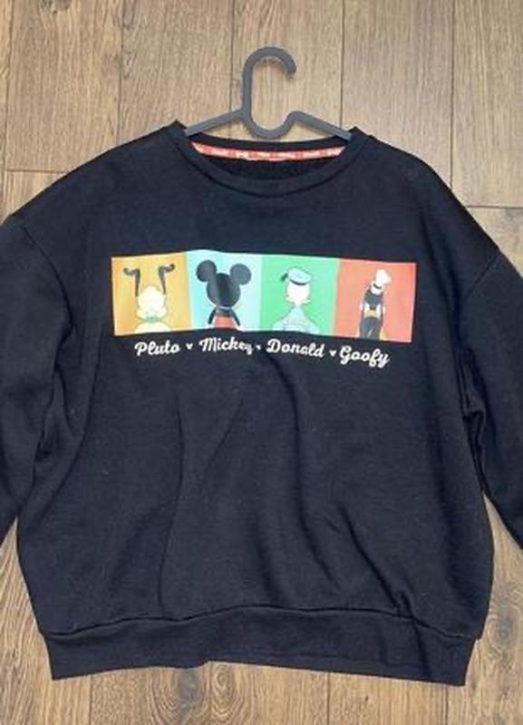 Девчонки, такая цена потому что пишу честно -сверху есть катушки, так был бы дороже. Не затасканный, не убитый, просто кое-где есть катышки. В жизни ярче, черный-насыщенный и накатка яркая. По бирке М, но так как свитшот оверсайз -сядет и на Л-ку без проблем. Внутри ткань как баечка, приятная к телу. Свитшот черного цвета, спереди принт(65% полиэстера, 35% хлопка). Длина 64см, ПОГ 65см-66см, свободного покроя,длина рукава 78см(длина от ворота).