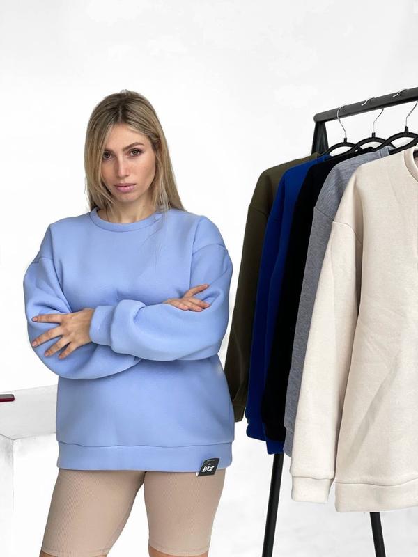 Базовая вещь в гардеробе! Худи оверсайз в едином размере! Качественный пошив! Ткань премиум сегмента Фото реал. Цвета: хаки, электрик,беж, мята, черный меланж, голубой Ткань: турецкое пенье на флисе Размер единый (42-46) Состав: 80% шерсть, 20% полиэстр Замеры мод:01: ОГ-120 см Длина изделия 68см