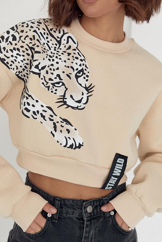 Оригінальний принт та модний фасон цього світшота разом створюють приголомшливий ефект. Це той випадок, коли в одному виробі поєднуються тренди та комфорт. Ця укорочена модель йде з подовженою лінією плеча, а прямий низ та довгі рукави закінчуються трикотажними манжетами. Кругла горловина доповнена бейкою в тон. Спереду від плечового шва розташований принт у вигляді зображення леопарда. Довжина переду виробу, см S - 42см; M - 42см; L - 42см Ширина під проймами рукавів (над грудьми), см S - 50см; M - 52см; L - 54см Довжина рукава від горловини, см S - 74см; M - 75см; L - 76см Довжина рукава по внутрішньому шву, см S - 48см; M - 49см; L - 50см Країна Туреччина Матеріал Трикотаж 3-нитка з начосом Склад тканини 65% бавовна, 35% поліестер Параметри моделі 84*60*92 зріст 173 Розмір на фото S