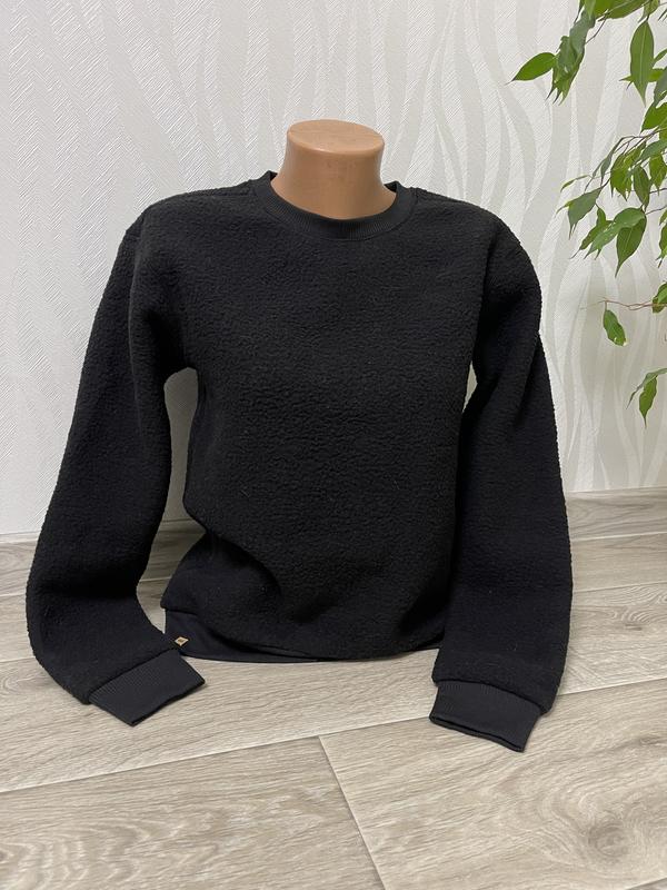 Тепла чорна кофта-світшот стане ідеальним вибором для прохолодних днів. М’яка, приємна до тіла та дуже комфортна. У відмінному стані, без плям і пошкоджень. Заміри на фото.