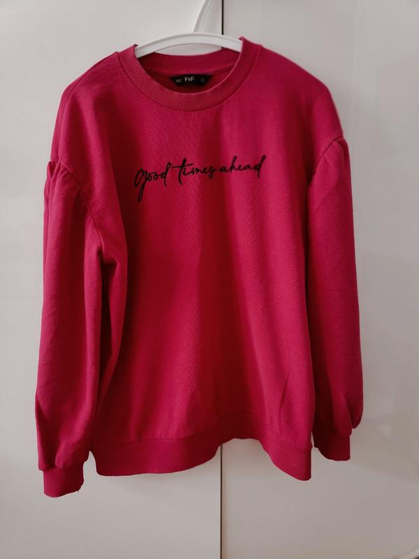 Свитшот худи р.12 овер Яркий малиновый цвет Длина 64см ПОГ59 ПОТ56 ПОС 50резинка фасон плечи спущены , пишний рукавчик 54см уборка. хлопок состояние б/у отличное