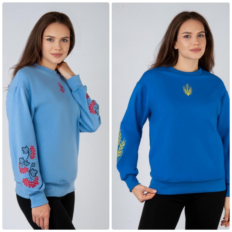 Свитшот женский с вышивкой на рукавах, патриотическая кофта вышиванка, джемпер с вышивкой...