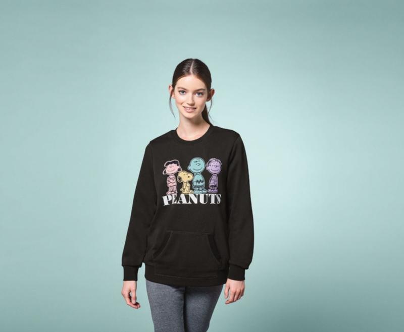 Світло утеплений на баєчці М'який і якісний матеріал Манжети на рукавах і кінці подолу Повсякденний крій Чорний з передньою кишенею та принтом Розмір: XS 32/34 eur S 38/38 eur
