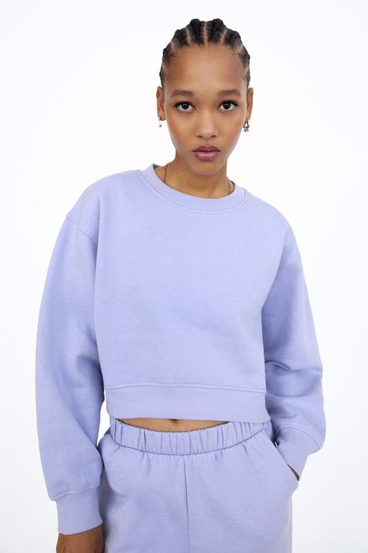 укороченный свитшот на флисе. красивый лавандовый цвет. размер l можно на и М