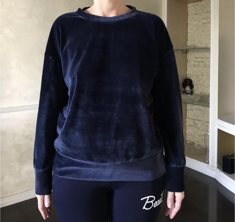 Світшот George в відмінному стані. Розмір 12-14, іде на L, XL. Фото на моделі S. Довжина 60 см. ПОГ 57 см. Рукав приспущений 48 см. Плечі 55 см. Тканина м‘ягусенька, приємна на дотик, дуже схожа на велюр.